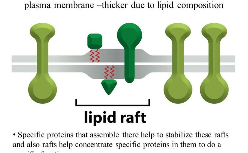 I cellemembranen har vi rafts, områder bestående av proteiner, sfingolipider, kolesterol usw. som kan forflytte seg, men også være forankret. Disse har trolig signalfunksjoner. Proteiner i membranen kan flyte sidelengs i en “todimensjonal lipidsjø” og utøver de fleste funksjonene.